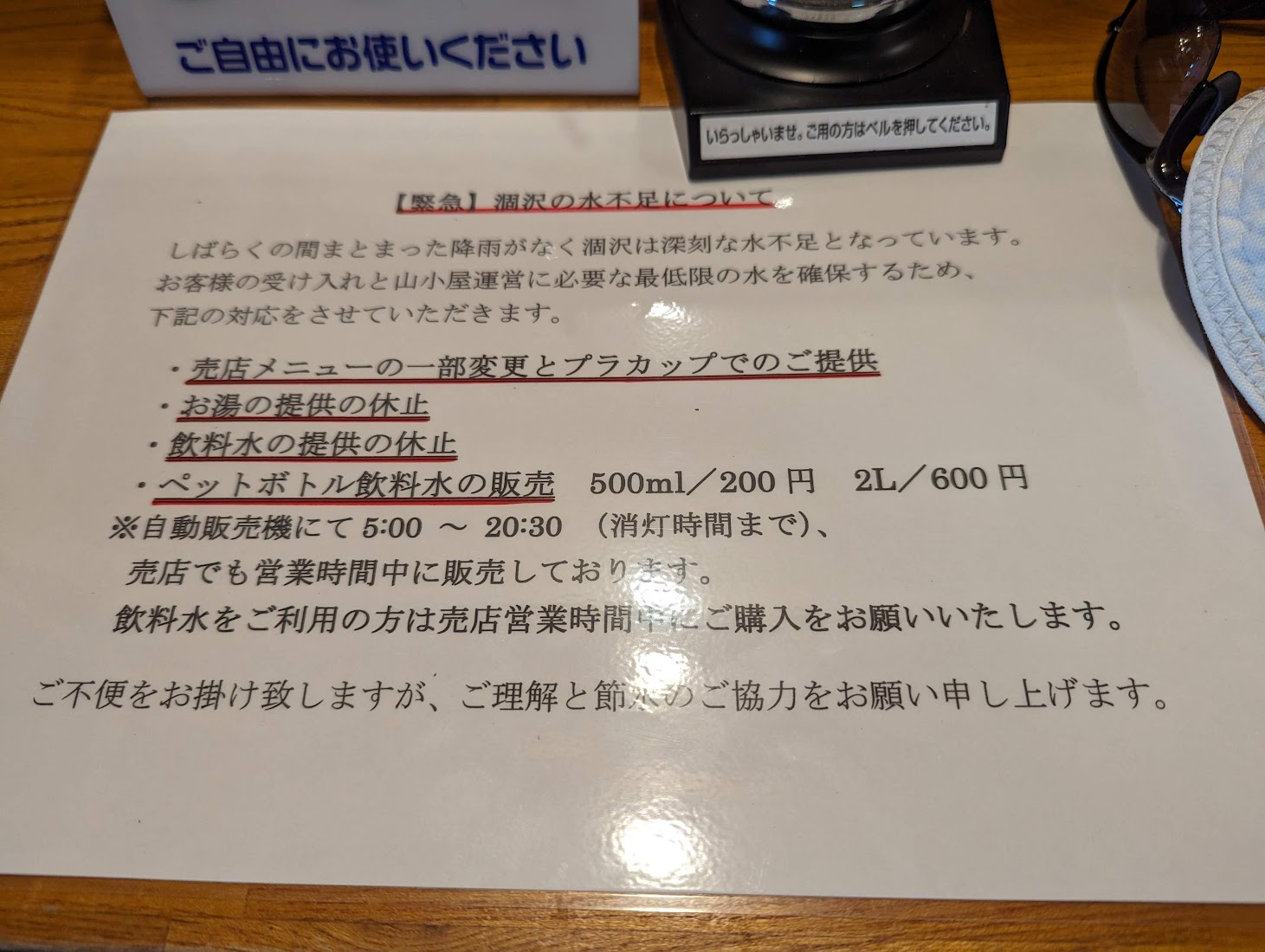 テン泊の皆さんも同じく大変なようで、中には5L持ってきたと言っていた人もいましたが、足が痙攣したと一休み。小屋泊で良かったと・・・