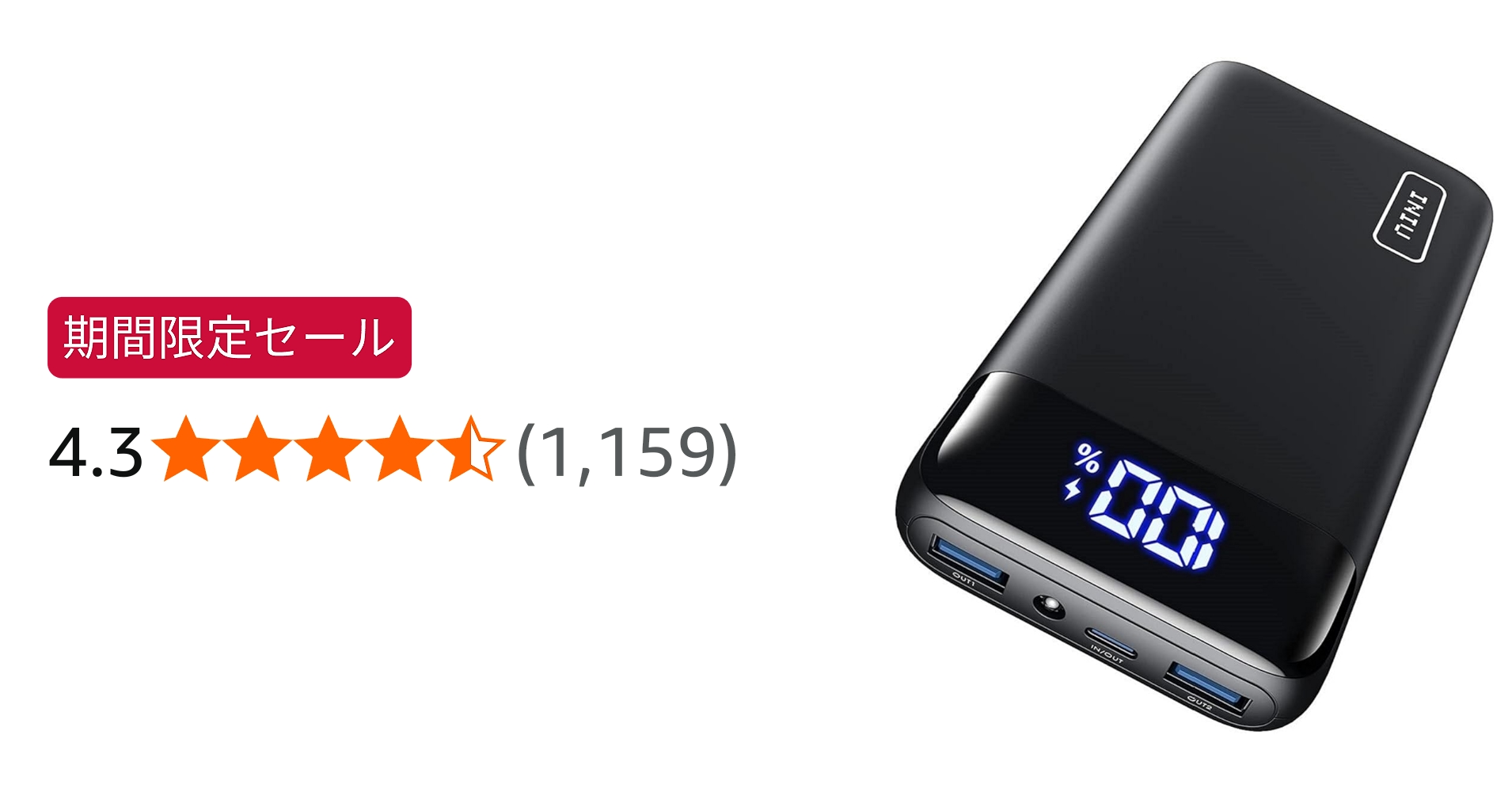 この容量ならかなり安いですし、残量表示あり、USB-Cでの入出力に対応しております。